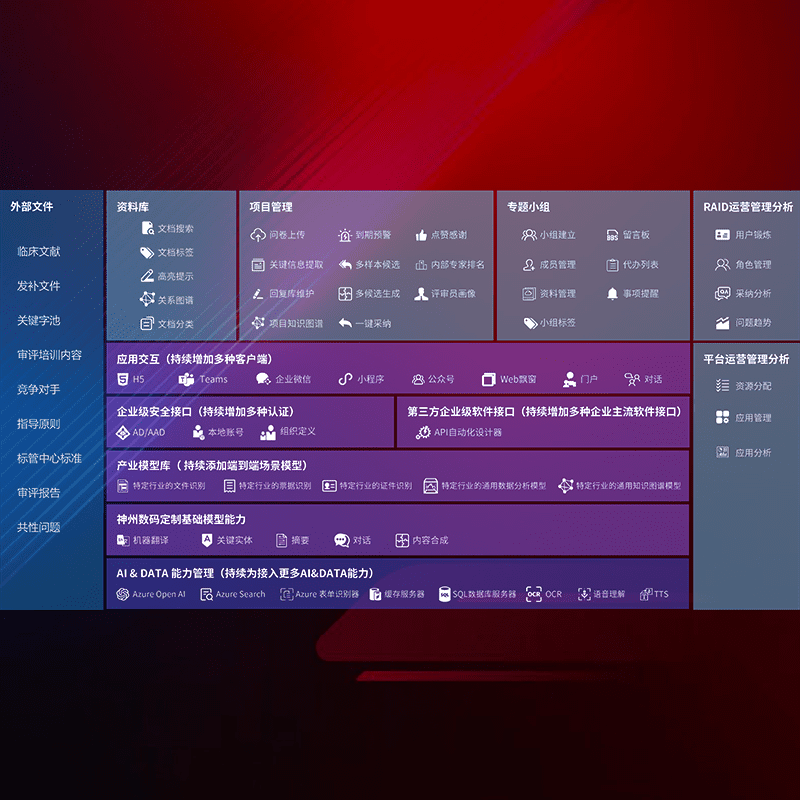 医疗器械产品上市前,,,,要熟悉严格与繁复评审标准,,,整理分析监管机构指导文件中的海量信息。。。。企业急需一个智能化解决方案,,提升知识管理效率,,,,提高评审通过率,,,,以提升其市场竞争力。。。