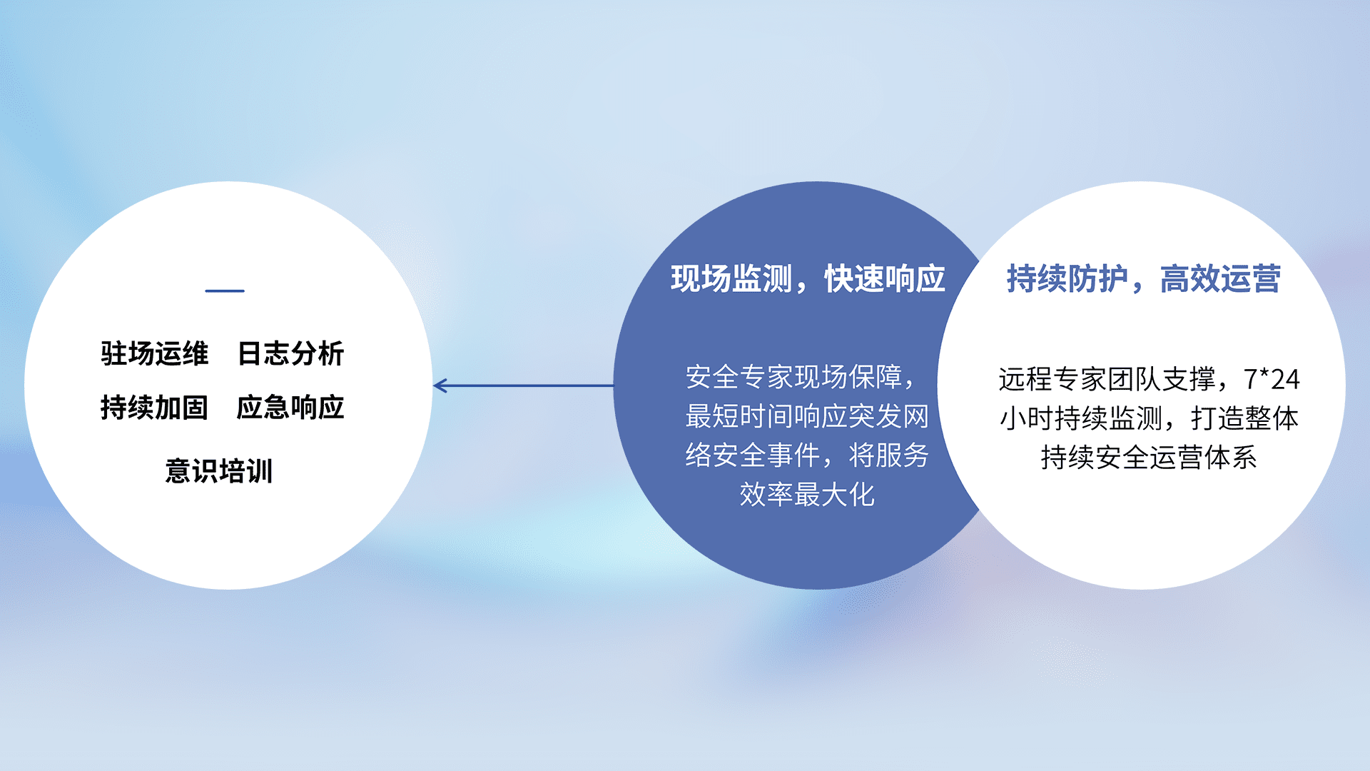 7X24小时持续监测安全事件,保持安全策略有效性,降低资产脆弱性风险,,,,精准拦截黑客攻击,,减少被黑客利用的机会,,,,第一时间遏制,,,,降低损失。。。